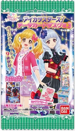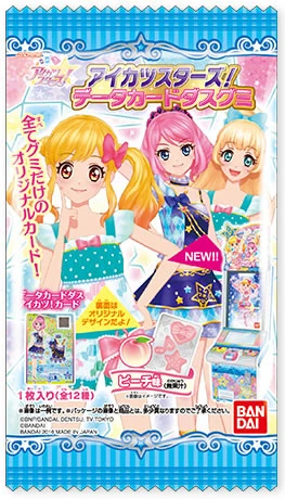 Aikatsu Stars! Data Carddass Gummy (アイカツスターズ!データカードダスグミ) is a gummy collection released under Data Carddass. Each package contains one promotion card, with each series consisting of twelve promotion cards.
