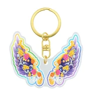When activated, one earring turns into the Venus emblem. The user gains black gradient, glittery feather wings, the gold base is stylized line a large vine. Decorating the wings are garnet and orange roses, gold roses and leaf, gems, silver vines with leaf and smaller flowers. Gem and gold bead chains wrap around the wing and along the bottom.