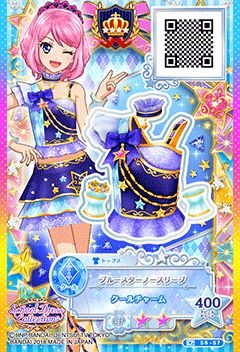 Blue Star Coord (ブルースターコーデ) is Laura's school dress for the 2016 series. It debuted in Episode 2 of the Aikatsu Stars! anime series and debuted in the Data Carddass Aikatsu Stars! promotional collections.