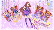 Broadway Show Up Coord (ブロードウェイショーアップコーデ) is a premium rare coord by the sexy brand Romance Kiss. It debuted in Part 3 of the Data Carddass Aikatsu Stars! series and has made a brief appearance in the eyecatch of Episode 25 of the anime.