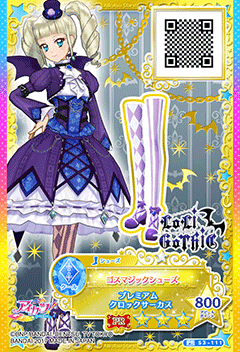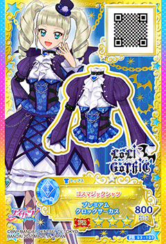 Goth Magic Coord (ゴスマジックコーデ) is a premium rare coord by the cool brand LoLi GoThiC. It debuted in the original Aikatsu! Franchise in Part 3 of the Data Carddass Aikatsu series.