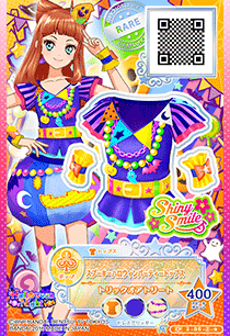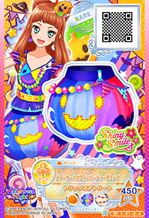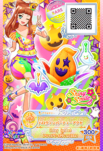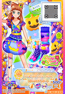 Spooky Halloween Party Coord (スプーキーハロウィンパーティーコーデ) is a campaign rare coord made by the pop brand Shiny Smile. It debuted in Part 3 of the Data Carddass Aikatsu Stars! series as a part of the Halloween Night Campaign and did not appear in the anime. It's a color variation of the Happy Halloween Party Coord.