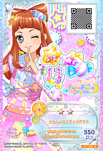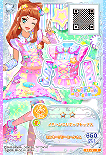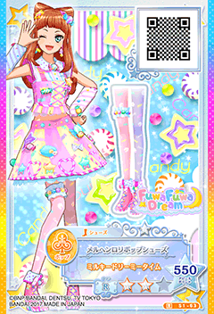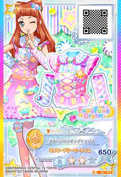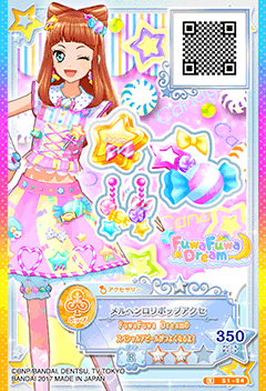 Märchen Lollipop Coord (メルヘンロリポップコーデ) is a rare coord by the pop brand FuwaFuwa Dream. It debuted in Part 1 of the Data Carddass Aikatsu Stars! Wings of Stars series and did not appear in the anime. It shares its design with the Wonder Lollipop Coord.