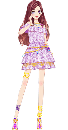 Paisley Chiffon Coord (ペイズリーシフォンコーデ) is a rare coord by the sexy brand Romance Kiss. It debuted in the Promotional Collection of the Data Carddass Aikatsu Stars! series and made a cameo appearance in Episode 4 of the anime.