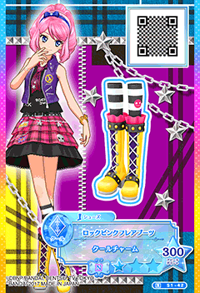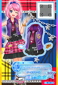 Rock Pink Flare Coord (ロックピンクフレアコーデ) is a cool brandless normal coord. It debuted in Part 1 of the Data Carddass Aikatsu Stars! Wings of Stars series and did not appear in the anime.