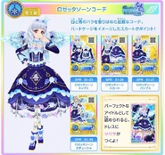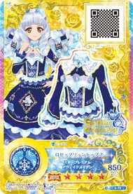 Rosetta Thorn Coord (ロゼッタソーンコーデ) is a star premium rare coord by the cool brand Gothic Victoria. It debuted in Part 1 of the Data Carddass Aikatsu Stars! Wings of Stars series and in episode 53 of the anime.