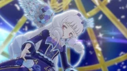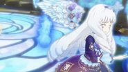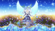 When activated, one earring turns into the Pluto symbol. The user gains pale blue feathered wings with silver vines adorned by tiny purple gems. The middle of the wing is pastel blue and silver with a midnight blue and black diamond pattern, some with gold designs. Over this are white and lilac roses, vines and gems.