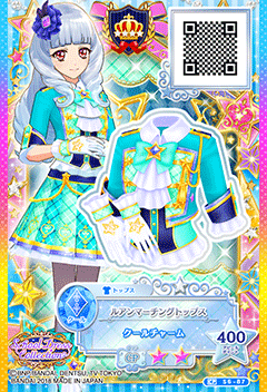 Rouen Marching Coord (ルアンマーチングコーデ) is Lilie's school dress for the second season. It debuted in Part 1 of the Promotional Collection of the Data Carddass Aikatsu Stars! Wings of Stars series and did not appear in the anime.