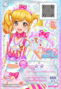 Sweet Shop Coord (スイートショップコーデ) is a rare coord made by the cute brand My Little Heart. It debuted in Part 4 of the Data Carddass Aikatsu Stars! series and did not appear in the anime.